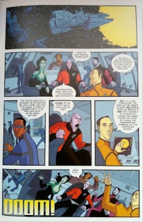 Second, Volume #3 of Invincible: Perfect Strangers since read. Wow. Blown away. I teared up a little and the only other comic that I’ve cried over was The Saga of Rex! Which I will discuss at some point in the near future. Back to the world of teenagers and superpowers: Omni-man, Invincible’s dad, revealed a huge secret that was so upsetting, I had all the same reactions as Invincible. Lots of truth comes out in this volume and it makes for good reading. I think it’s my favorite so far and there is a great bit in the beginning mimicking Star Trek TNG! Wow I’m a sucker.